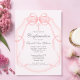 Un joli arc rose entoure votre élégante invitation de confirmation pour votre petite fille. Une belle croix chrétienne est au-dessus des détails invitations pour votre célébration de confirmation ou baptême. Belles invitations à des rubans religieux pour votre cérémonie catholique.
