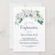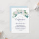 Cette invitation classique à la confirmation des fleurs blanches est parfaite pour un événement printanier. L'élégante décoration florale est composée de roses blanches et d'ivoire, de pivoines et de chrysanthèmes, avec des touches de fleurs d'aquarelle bleu périvent et de feuillage vert.