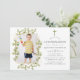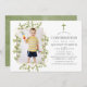 Invitation de confirmation de la forêt de bois sauvage avec des feuilles ornant un cadre géométrique doré. Une photo en forme de portrait est conseillée.