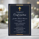 Célébrez une étape spéciale avec cette confirmation Marine Blue Gold Minimalist Boy Invitation. Avec un élégant arrière - plan bleu marine aux accents dorés sophistiqués, cette invitation est parfaite pour une célébration religieuse moderne et intemporelle. Le design minimaliste assure une touche raffinée et classe, ce qui en fait l'endroit idéal pour un événement de confirmation formel.
