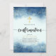 L'invitation de confirmation marine et dorée moderne, élégante, présente une croix d'or sur un arrière - plan de la marine avec confetti de parties scintillant, écriture branchée "confirmation".