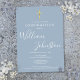 Une élégante invitation de confirmation avec un nom de signature de script chic. Personnalisez avec vos informations spéciales d'événement en lettres chic sur un arrière - plan bleu poussiéreux. Conçu par Thisisnotme©