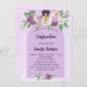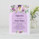 Arrière - plan violet, lavande aquarellé. Décoré de fleurs violettes et violettes aquarelles et d'une croix dorée. Personnalisez et ajoutez votre nom et vos coordonnées de réception.