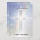 Un arrière - plan arc-en-ciel en streaming avec une croix argentée légère fait une belle confirmation ou invitation baptismale.