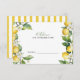 La "Squeeze Principale | Watercolor Lemon Mediterranean Tile Fête des mariées Conseils for the Bride Card" est une carte magnifiquement conçue qui est parfaite pour une douche nuptiale à thème citron. Avec des citrons d'aquarelle vibrants, une verdure élégante et un motif de tuiles méditerranéennes aux tons bleu et jaune doux, cette carte ajoute une touche d'élégance et de joie à la célébration. Conçu par CaMiDesigns, il peut être facilement et rapidement personnalisé avec vos détails. Pour toute commande, expédition, informations sur le produit et toute autre assistance, veuillez contacter directement le service à la clientèle de Zazzle.