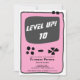 Une fête anniversaire de enfant ludique, parfaite pour le jeu vidéo et le joueur de console avec un carton mignon d'un jeu vidéo dans éditable couleur rose et gris et les pixels carrés motif à l'arrière.