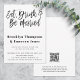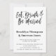 Cette faire-part de mariage moderne a les mots manger, boire et être marié! dans une police de caractères manuscrite. Au verso, vous pouvez télécharger un code QR pour diriger vos invités vers votre site mariage pour toutes les informations et vers RSVP.