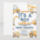 Invitation de fête "Construction It's a Boy" pour camion à benne. Invitation de fête à thème construction pour la Baby Shower de votre enfant ! Caractéristiques camions de construction dessinés à la main. Invitation de construction, Invitation de Baby Shower de construction, Invitation de construction, Invitation de fête de construction, Invitation de fête de camion à benne, Arrêtez la circulation et fermez la route, Bull Dozer, Pelle, camion à ciment, une grue à boule de démolition, éclaboussures de terre et un modèle de Baby Shower moderne facile à personnaliser. Plus de créations et de fournitures de fête sont disponibles dans ma boutique NiceStudioCreative.