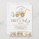 Gray Yellow Construction Dirty 3e-y 3e Anniversaire Invitation Cute garçon's construction troisième anniversaire invitation avec divers véhicules de construction, métal gris comme motif, grand nombre et texte de calligraphie moderne.