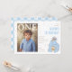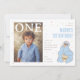 The oversized “ONE” layered across the photo makes a bold and trendy statement, turning your little one’s picture into the centerpiece of the celebration. A lovable blue monster illustration stands beside the party details, bringing classic charm and personality to the layout. Customizable name and event information are arranged in a clean, balanced design that feels both playful and polished.