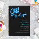 Chut, c'est une surprise ! Cool neon bleu script rétro noir photo Sweet 16 neon invitation anniversaire.