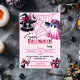 Cette invitation à la fête d'Halloween, jouée et chic, allie le rose et le noir de façon élégante, pour ajouter une touche moderne à vos célébrations éffrayantes. Le design comprend des éléments fantaisistes tels qu'un fantôme et un squelette ornés d'arcs roses, posés sur un fond d'une délicate toile d'araignée. La typographie est un mélange de polices gothiques et ludiques, rendant l'invitation à la fois amusante et facile à lire. Avec des détails clairs sur la date, l'heure et l'emplacement de l'événement, cette invitation est idéale pour ceux qui cherchent à accueillir un rassemblement d'Halloween élégant mais sinistre.