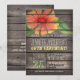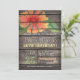 Invitation de fête d'anniversaire avec corail orange, rouge, jaune, fleurs vertes, design floral sur rustique vintage pays ouest, grange bois, arrière - plan imprimé en bois avec élégantes polices de style ancien. Parfait pour la campagne, la ferme, la ferme, le thème baryare pour adultes Fêtes d'anniversaire! Ce mignon et amusant invitation est idéal toute l'année pour les fêtes d'anniversaire du printemps, de l'été, de l'automne ou de l'hiver ! Invitation d'anniversaire rustique pour tout âge adulte ou ado, y compris Sweet 16, seize, 18ème, 21ème, 30ème, 40ème, 50ème, 60ème, 70ème, 75ème, 80ème, 85ème, 90ème, 95, 100ème anniversaire.