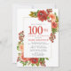 Des roses rouges bordeaux douces se joignent à des roses roses roses coralliennes pour créer une élégante invitation à la fête du 100e anniversaire de l'automne. Les couleurs chaudes de l'automne sont belles nichées dans des baies rouges, des fleurs sauvages rouges et des feuillages verts. Le fond de l'invitation est un bordeaux lumineux avec une belle et spectaculaire disposition florale. Cette invitation à la fête du 100e anniversaire fait partie de la collection Gathering, qui contient le modèle que vous pouvez utiliser pour les costumes d'invitation et les fournitures de fête.