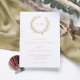Parfait pour les mariages de plage et nautiques, une couronne de corail encadre les initiales monographiques de la mariée et du marié en haut de cette élégante invitation côtière minimale blanche et beige. Le dos est de couleur beige foncé.