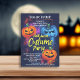Le thème de la gamme bleue turquoise et orange brille Jack-O-Lantern citrouilles avec un arrière - plan bleu foncé et des taches de peinture. Invités Invitations à une soirée costume halloween avec cette invitation imprimée personnalisée. Des graphismes personnalisés et personnalisés avec vos détails personnalisés. Idéal pour une fête d'adulte, de famille ou d'ado qui n'est pas effrayant et seulement légèrement éffrayant.