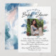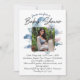 Ce design moderne présente des nuages fantaisistes et un arrière - plan d'aquarelle bleu serein, créant une atmosphère de rêve qui donne le ton à votre célébration spéciale. Le script moderne apporte une touche sophistiquée, ce qui en fait le choix idéal pour les parents qui veulent partager leur joie de façon unique et mémorable. Personnalisez cette invitation de baby shower avec votre propre photo personnalisée pour en faire une véritable unique. Qu'il s'agisse d'une image d'échographie, d'un portrait d'un couple aimant, d'une photo de la future maman montrant fièrement sa bosse, ou d'une photo du voyage de grossesse, cette touche personnelle fera ressortir votre invitation.