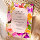 Couleur de couleur florale en gras Couleur douce invitation de 16 ans avec des teintes rose, violet, jaune, vert et des fleurs abstraites audacieuses et une forme géométrique arrondie rectangle, en or et rose pastel clair, ajoutez votre photo à l'arrière.