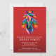 Une tête de course et une crinière de couleur vive sur un arrière - plan rouge sont présentées sur ces invitations de fête de derby. CORRESPONDANCE d'objets dans notre collection.