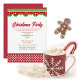 Invitation à une fête de Noël, réalisée en blanc, avec des bordures fantaisistes en haut et en bas constituées de rubans festonnés à pois et des accents verts. Personnalisez le texte personnalisé pour répondre à vos besoins de fête de fin d'année.