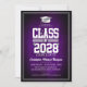 Invitations de fin d'études amusantes dans les couleurs populaires de l'école de violet et d'argent