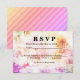 Printemps, été ou automne RSVP et carte menu. Couleurs abstraites à l'avant. De belles couleurs orange, violet et rose se mélangent dans cette oeuvre. Des rayures diagonales aux couleurs pastel orange, rose et violet sur le dos. D'autres produits mariages sont disponibles par l'intermédiaire de cette boutique. Conception de transfert pour d'autres produits.