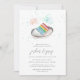 Une douche à nuptiale ou des invitations wedding showers sont offertes avec une tranche de gâteau en arc-en-ciel agrémentée de confettis d'aqua et de mousseux à l'aquarelle. Personnalisez avec vos détails de douche en lettres grises.