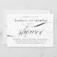 Wedding shower classique noir et blanc sobre pour les couples avec une touche moderne avec l'élégant script du mot "douche". Le type de papier est optionnel ; découpes de dés également disponibles. Obtenez la main avec les outils de montage do-it-yourself de zazzle, en éditant la conception avec tous vos propres détails sur votre mariage. Vous pouvez ajouter du texte et des images comme vous le souhaitez. Évitez les kits bon marché et achetez ces invitations officielles de wedding shower qui ont été créées par un professionnel. Plus d'options pour votre correspondance mariage et jour d'accessoires La plupart des invitations que je conçois seront très agréables pour toute saison : hiver, printemps, été, automne ou mariages d'automne. Elles sont également classées comme vintages, anciennes, élégantes, formelles, noires et blanches ou traditionnelles.