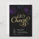 Des amis Invitations sonneront dans le Nouvel An avec notre invitation moderne et élégante à la fête de vacances. Le design présente des illustrations de feux d'artifice colorés bleus et violets et le texte "Cheers" dans un joli script élégant en lettrage sur un arrière - plan noir. Ajoutez les détails de votre fête en lettres blanches correspondantes.