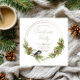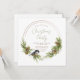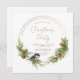Un design inspiré de la nature avec un oiseau-chiche aquarelle reposant entre des branches de pins, des cônes et des points dorés épars. La disposition voûtée et l'écriture manuscrite créent un look calme et festif avec des tons doux vert et cuivre. Idéal pour les produits d'hiver et les cadeaux de saison.