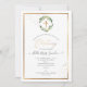 Couronne de roses blanches aquarelle de verdure et de feuillage PixDezines, avec une croix dorée et des confettis, accompagnés d'une calligraphie de luxe. Tous les éléments sont modifiables.