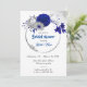 Magnifique rose bleu royal et lis avec rose argent et fleur marguerite botanique en argent wreath invitation nuptiale douche nuptiale. Les détails de la parties scintillant sont simulés