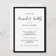 Ce brunch de mariée élégant et élégant et ses invitations à la bousculade sont accompagnés d'un texte noir chic sur un arrière - plan blanc, bordé de noir classique.