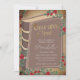 Cette invitation personnalisée à la fête présente un thème fantasque, vintage conte de fées. L'arrière - plan a un design de papier parchemin défraîchi, accentué de roses rouges et de vignes autour des frontières. Une couverture de livre de conte de fées est imprimée à travers le centre avec l'expression "Il était une fois" imprimée dans une feuille d'or design.