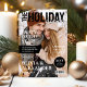 Les invitations à la fête de Noël inspirées par un magazine avec une photo de couverture complète des hôtes et le titre "l'édition des Fêtes", l'invitation comprend également un modèle texte élégant qui est facile à personnaliser avec les détails de la fête tels que la date, l'heure et l'emplacement.
