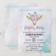 Une invitation à la fête d'anniversaire avec un arrière - plan d'aquarelle turquoise et pastel. Un crâne animal chic boho avec un bouquet floral sur la tête et des petits papillons qui fleurissent. Une jolie bordure décorative aux petites teardrop en bleu clair.