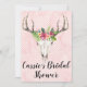 Invitation moderne avec aquarelle illustration d'un crâne de style Boho avec fleurs d'île et feuillage sur l'eau tachée rose et blanc pois arrière - plan