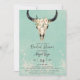 Cette invitation à la douche nuptiale boho présente un crâne de vache fleuri sur un arrière - plan floral turquoise et beige. - par MI Mariage Designs