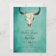 Cette invitation à la douche nuptiale de saumons boho présente un crâne de vache fleuri sur un arrière - plan turquoise. - par MI Mariage Designs