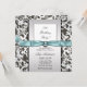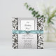 Elégante turquoise bleu et noir damask 21ème anniversaire invitation de fête. Personnaliser pour votre événement.