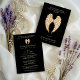 The angel wings, a symbol of protection and spiritual guidance, represent the eternal connection between our loved ones and the lasting memory that remains in our hearts. Its minimalist design, with fine and delicate lines, adds a touch of elegance and distinction, making this invitation perfect for a dignified and respectful tribute. The harmony between the dark background and the cream details enhances the feeling of calm and remembrance, ideal for moments of farewell and reflection.