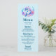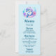 Carte menu avec une adorable illustration. Un dauphin bleu et violet entouré de jolis plantes sous-marins colorés.