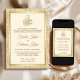 Éblouissez vos invités avec cette faire-part de mariage de style islamique avec une élégante bordure damassée et fausse feuille d'or avec "Bismillah" en calligraphie arabe sur un arrière - plan crème. Ajoutez simplement les détails de votre événement sur ce modèle facile à utiliser pour en faire une invitation unique. Retournez la carte pour révéler un beau motif damassé au dos de la carte.