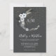 Boho Star Crescent Moon Celestial Monogram Faire-part de mariage. Célébrez une soirée sous les étoiles avec ce thème fantasque de mariage céleste boho. Doté d'une aquarelle, d'étoiles dorées, de fleurs blanches, de plumes et d'autres accents bohèmes, il crée un look élégant et ludique. Le dos présente une aquarelle étoilée foncée. Dans l'ensemble, les couleurs sont le noir, le blanc, l'or et le gris, avec un arrière - plan gris fusain et un texte blanc. Le design combine un élégant mélange de typographie de script et une police serif. Profitez d'une soirée mystique sous ce ciel enchanteur de lune de croissant. Crescent Lune Faire-part de mariage céleste. Disponible sous forme d'invitation imprimée ou d'invitation numérique téléchargeable que vous pouvez envoyer par e-mail ou avoir imprimé localement !