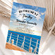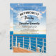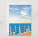 Des invitations à la retraite à thème voile avec le pont d'un bateau de croisière, l'océan, un beau coucher de soleil, et un modèle de célébration à la retraite facile à personnaliser.