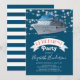 Des invitations à la fête de la retraite sur le thème de la voile avec le pont d'un bateau de croisière, des lampes à cordes, et un élégant modèle de célébration facile à personnaliser.