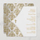 Elégante croix blanche et or avec le baptême bébé damassé or et modèle d'invitation au baptême. Ce design élégant, blanc et or, s'applique à un garçon ou une fille.