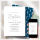 Célébrez le baptême de votre enfant avec élégance! Dotés d'un script moderne sur un arrière - plan blanc propre et d'un motif blanc et bleu marine à l'arrière, ces invitations sont prêtes à votre touche personnelle pour les rendre uniques. De plus, avec l'option de télécharger instantanément, vous pouvez les faire envoyer en un rien de temps!