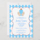 La première invitation à la communion moderne comprend l'arlequin bleu et brun, la croix et le chalice.