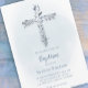 Invitation Croix de l'aquarelle bleu-gris du baptême